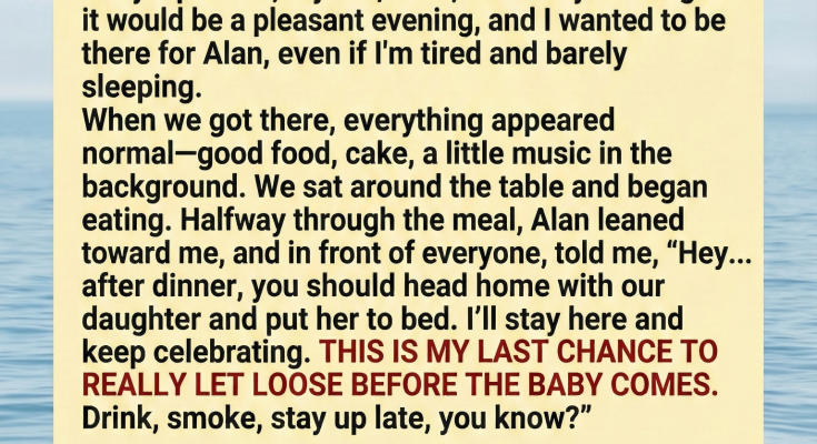At 39 weeks pregnant, I was exhausted but determined to celebrate my husband Alan’s birthday. Instead, his words at dinner cut so deep I grabbed my daughter’s hand and walked …