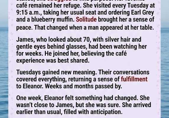 Every Tuesday, Eleanor, a retired teacher grappling with loneliness, visited the same café and sat by the window. One morning, her usual seat was reserved—by a stranger named James, who …