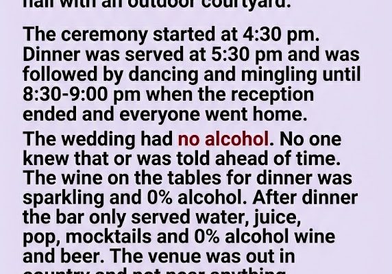 “A surprise dry wedding in the middle of the country isn’t a celebration—it’s a hostage situation with mocktails. 🥂🚫 If you’re skipping the bar, don’t skip the heads-up. Read More