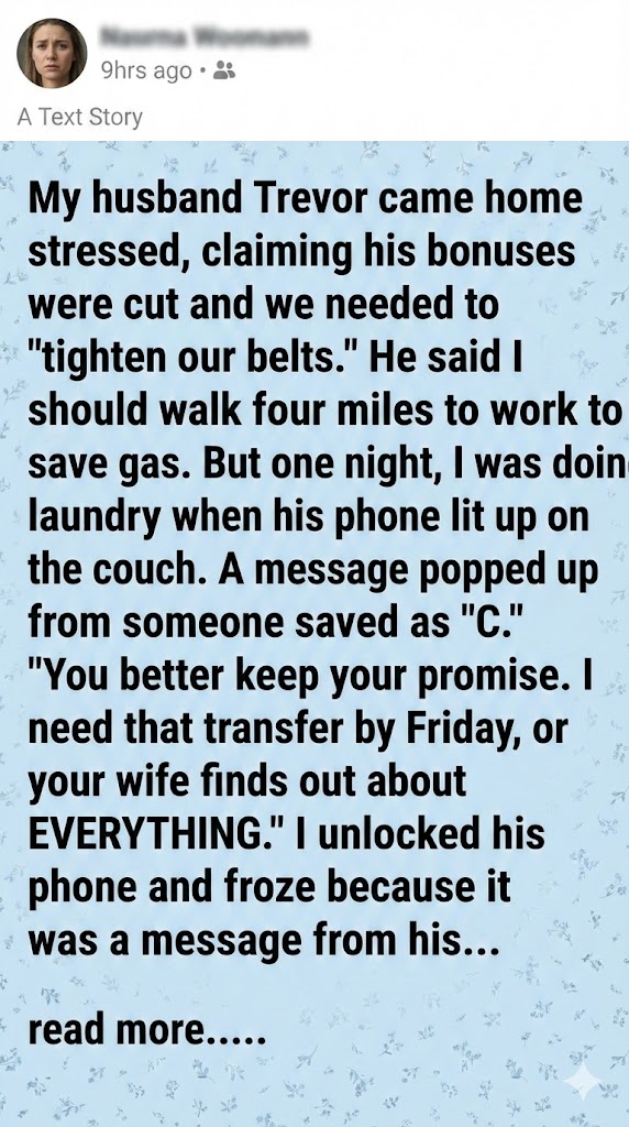 I gave in, because what else could I do? Arguing only made things worse. I started walking. In the mornings, I’d leave before sunrise, earbuds in, sneakers pounding the pavement. I told myself it wasn’t so bad. It was exercise, right? Free cardio. But the real reason I kept walking wasn’t to save gas—it was because I didn’t want to give Trevor a reason to get angry. He’d been snapping a lot lately, slamming drawers, sighing like everything I did was a burden.