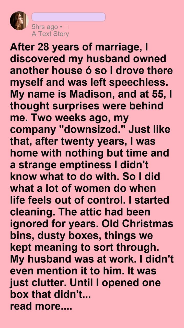 My curiosity got the better of me. When I popped the lid open, there weren’t old love letters or forgotten cash inside. It was a thick manila envelope containing property deeds, recent tax documents, and a pair of shiny brass keys. The name on the deed was my husband’s, David.