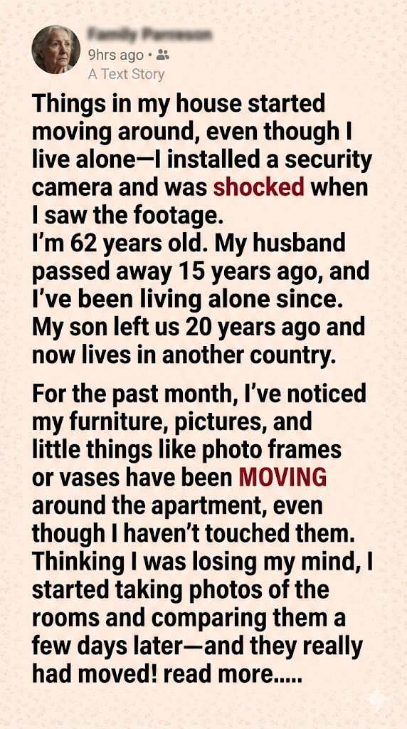 After years of living quietly alone, 62-year-old Margaret began noticing strange changes in her home. At first, she blamed age and forgetfulness when furniture shifted or photos appeared in odd places. But when a dining chair ended up across the room and an old portrait appeared on the kitchen counter, doubt turned into fear.