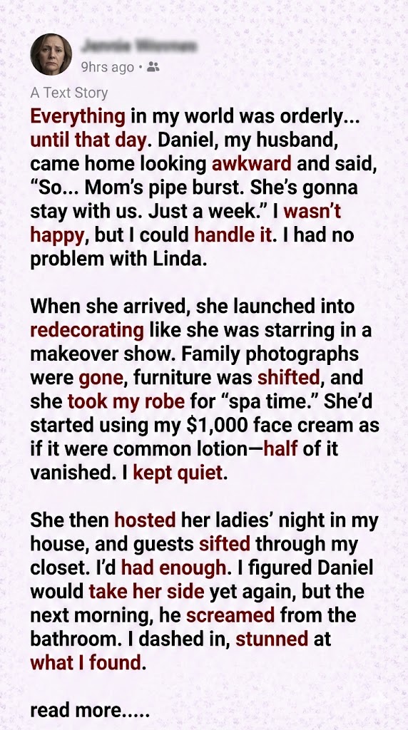 I felt violated. That bathroom was my sanctuary. The next day I confronted her, explaining how personal those items were—I needed boundaries. She laughed, calling me “too sensitive” and said she was just “making the house more luxurious.” My husband urged me to let it go, but I couldn’t.