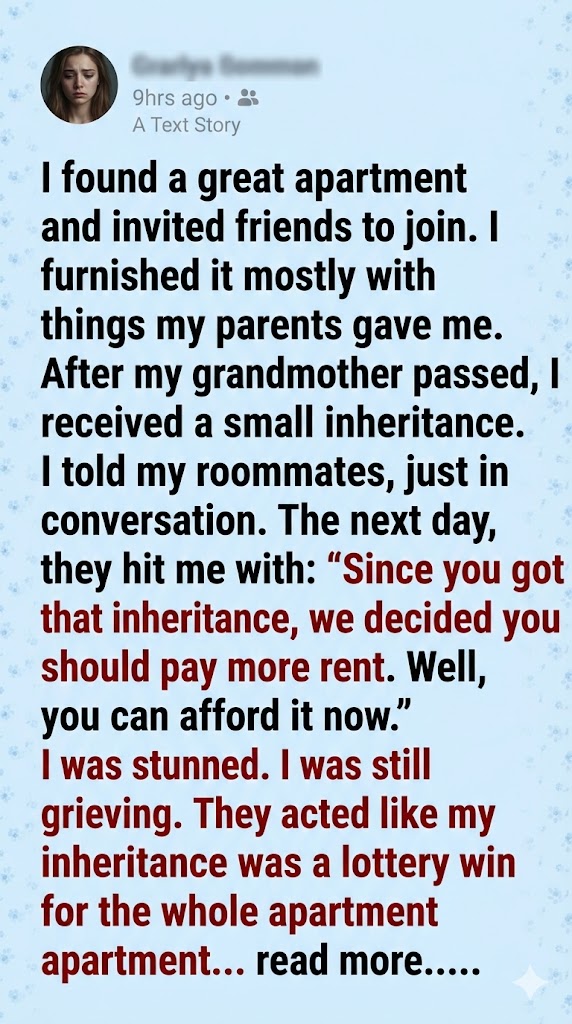 When my grandfather passed away, I inherited a modest sum—enough to ease my student debt and maybe put a down payment on a future home. I didn’t flaunt it. I didn’t change my lifestyle. But somehow, my roommates found out.