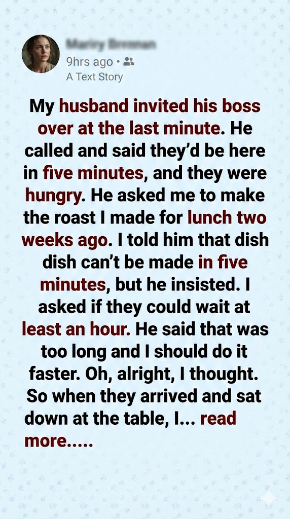 Nathan’s call came just as Liv had finally settled the kids for their naps. Her laptop blinked with deadlines, her body worn from juggling motherhood and remote work. Then came his voice—cheerful, oblivious: “We’ll be there in five! Celeste, my boss, is with me. Can you make that roast you did last time?”