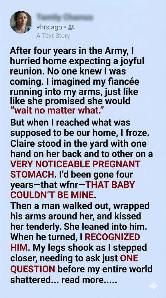 I came home from a four-year deployment expecting a tearful reunion. Instead, I found my fiancée in the yard—hugged, kissed, and very pregnant. And the man holding her was the last person I ever expected.