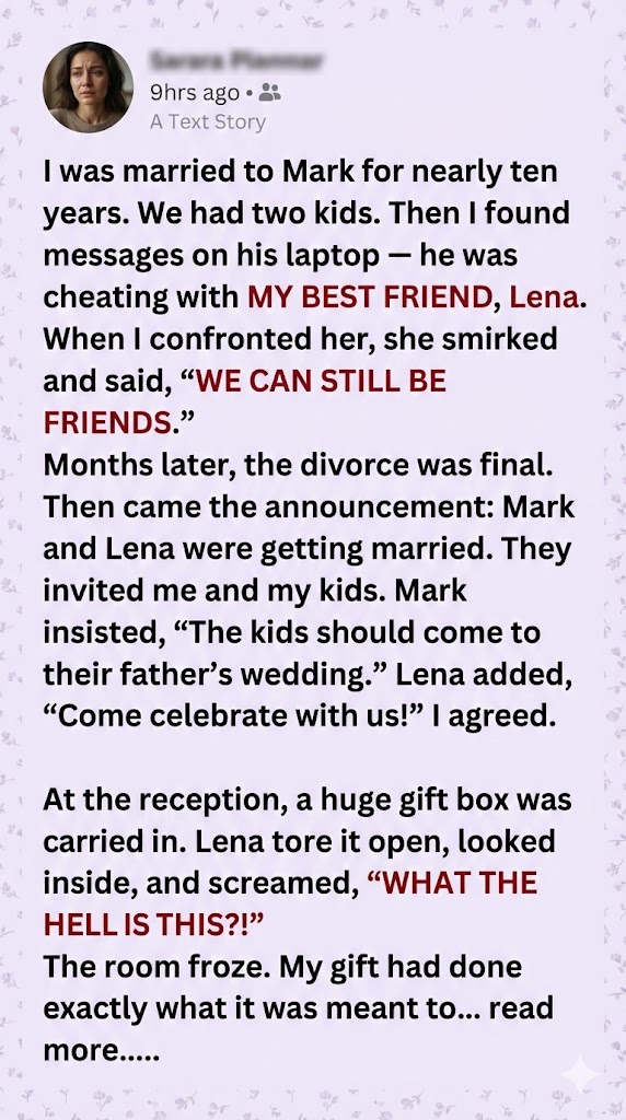 When Sarah is invited to the wedding of her ex-husband and ex-best friend, she chooses grace over chaos, or so it seems. In a story about betrayal, resilience, and the power of quiet truth, one woman brings a gift that no one saw coming… and no one will ever forget.