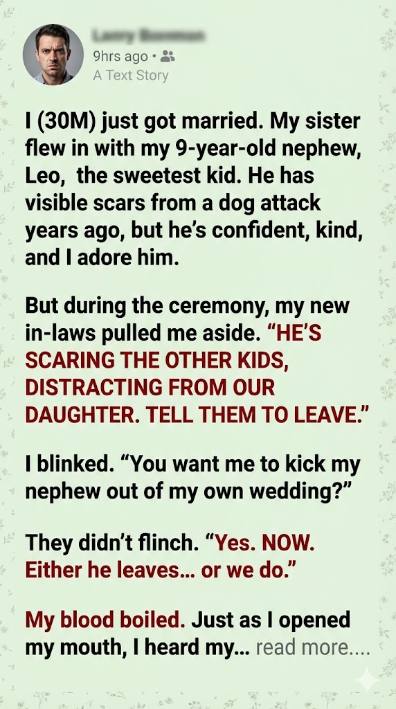 When Jack’s in-laws demanded he remove his scarred nephew from his wedding ceremony, claiming the boy was “scaring other children,” he faced an impossible choice. But he wasn’t the only one listening to their cruel ultimatum, and they never expected what his soon-to-be wife, Emily, would do next.
