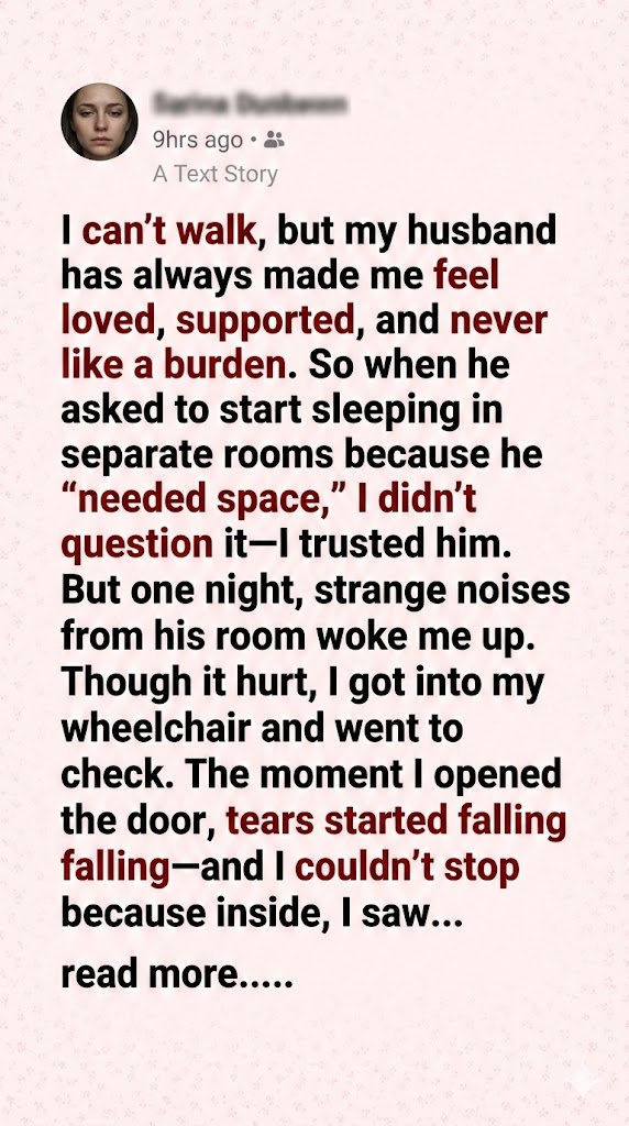 One night, I couldn’t take it anymore. I wheeled myself down the hall, heart pounding. His door was locked. That hurt more than I expected. Locked out—not just of his room, but of his world.