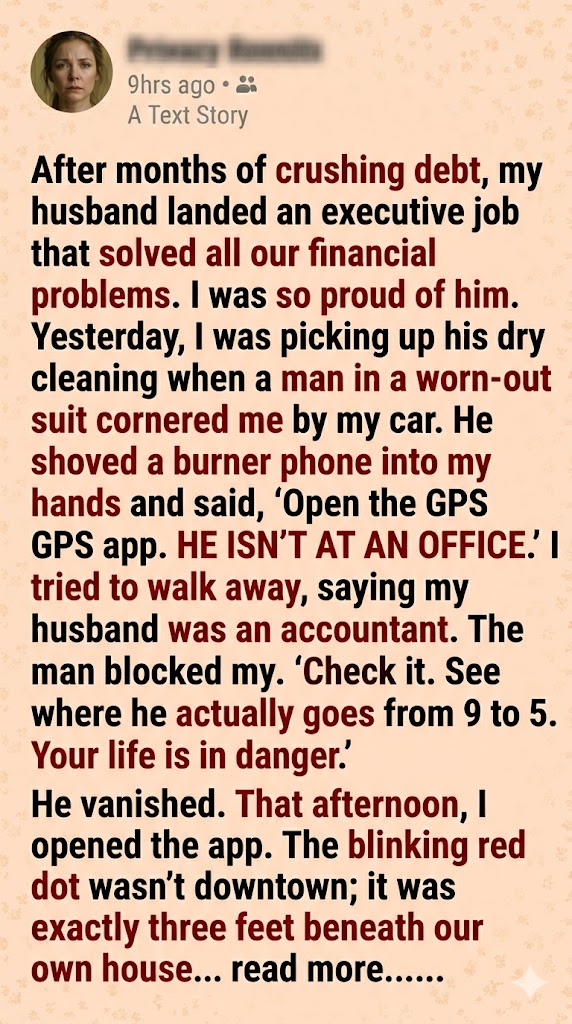 My heart pounded in my throat. Greg had kissed me goodbye at 8:00 AM, briefcase in hand, driving off in his new BMW. But if the tracker was right, he hadn’t gone downtown to a high-rise accounting firm. He had circled right back.