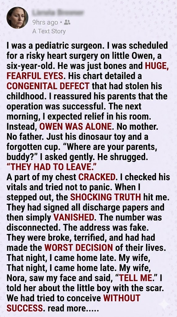 He was six years old, impossibly small in that oversized hospital bed, with eyes too large for his pale face and a chart that read like a death sentence: Congenital heart defect. Critical. After I saved his life, his parents abandoned him.