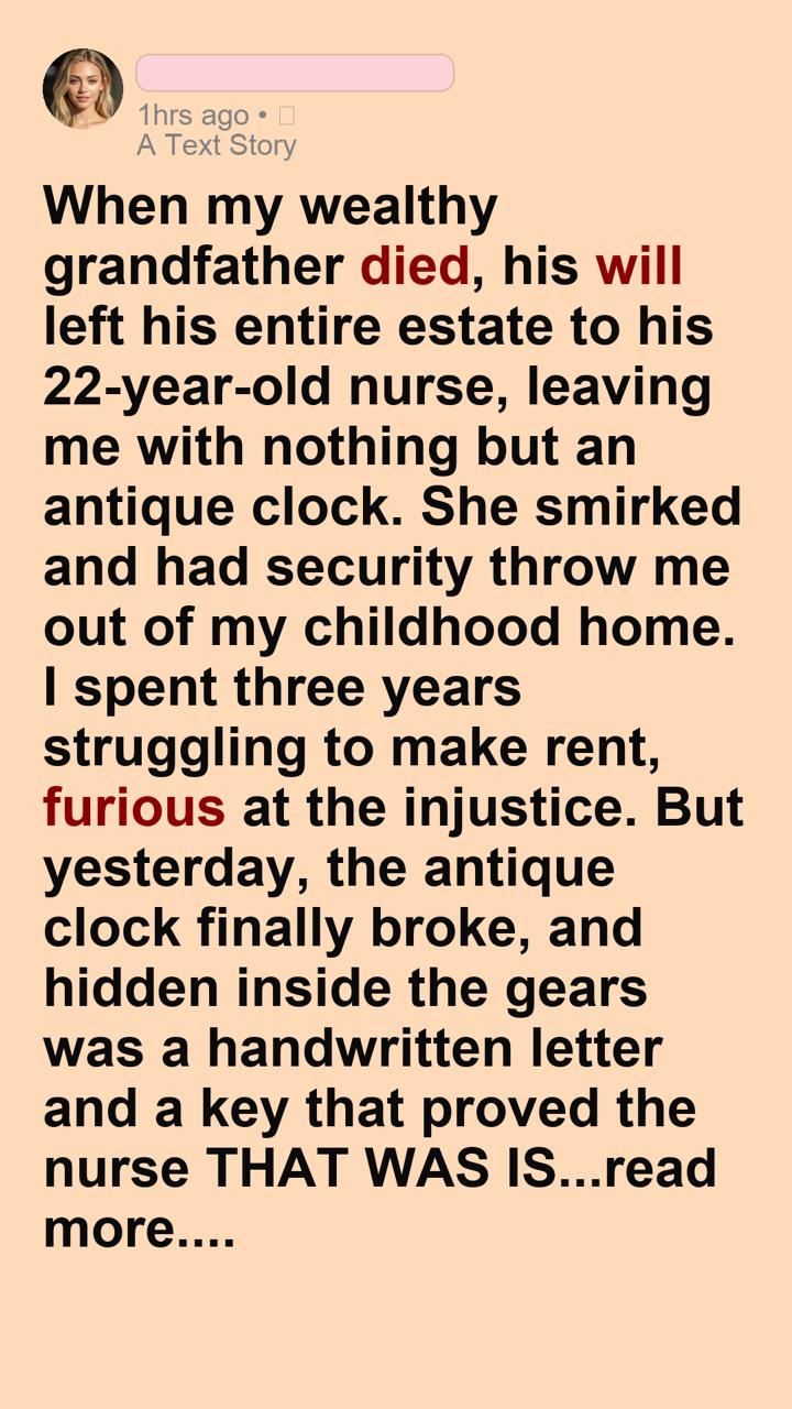 Inside rested a tarnished brass key and a thick envelope sealed with my grandfather’s crest. My hands shook as I broke the wax. The letter was dated two weeks before his death.