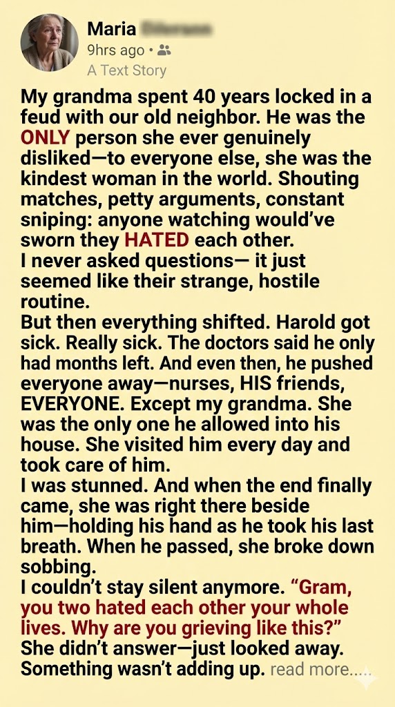 I hugged her on his front porch while the January wind whipped around us, and I did not ask any questions. But I knew, standing there, that the everything I thought I understood about my grandmother and Harold was wrong.