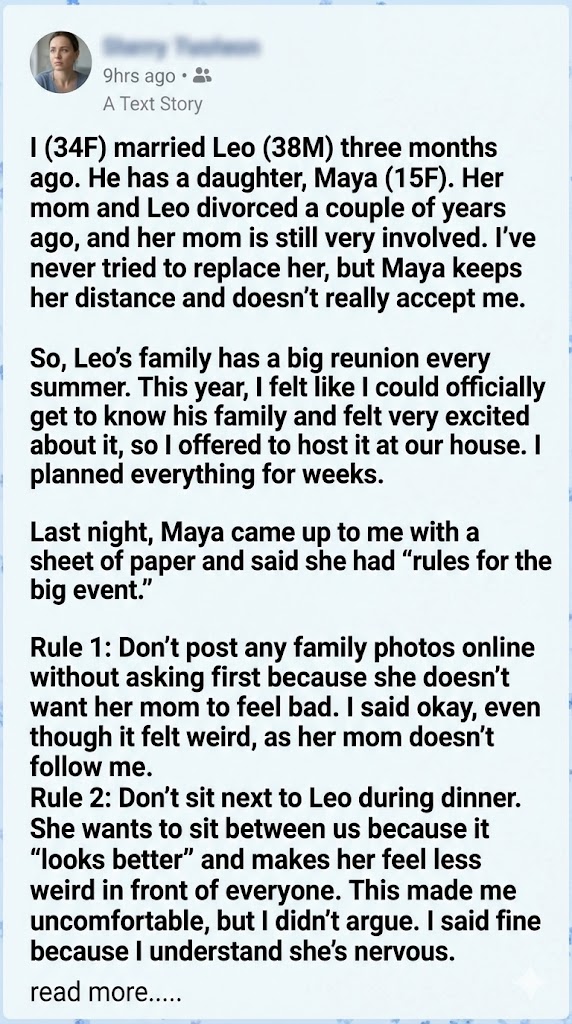 I was right to refuse to lie. Marriages don’t work if one partner is asked to disappear to keep other people comfortable. Hosting a reunion while playing “mystery girlfriend” would set a terrible precedent: it teaches everyone that my place in the family is negotiable by whoever is loudest.