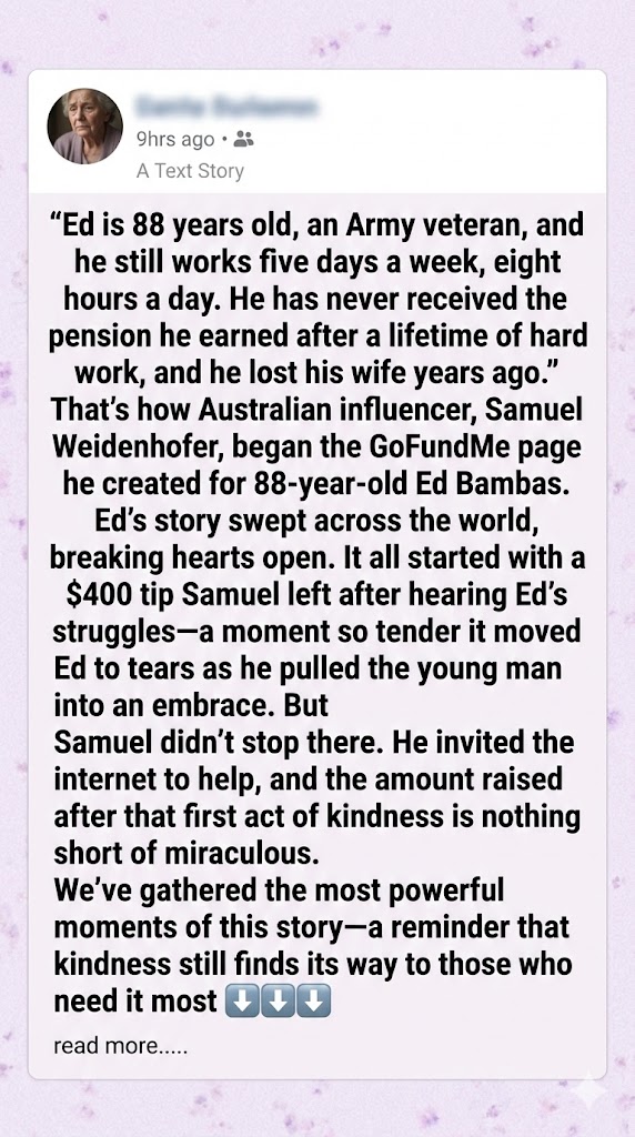 He launched a GoFundMe fundraiser with a staggering $1 million goal to help me finally retire. The campaign stated, “Despite everything, Ed shows up every day with quiet dignity, strength, and perseverance. His story is a stark reminder that too many of our seniors, especially veterans, face incredible challenges just to survive.”