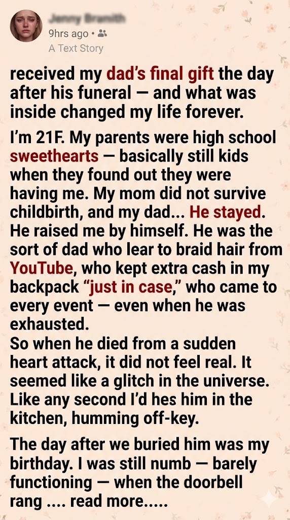 The doorbell startled me so badly I froze. I wasn’t expecting anyone. Everyone I loved had already shown up, cried with me, and gone back to their lives. I opened the door to find a delivery driver holding a small, worn cardboard box. My name was written on it in handwriting I knew better than my own.
