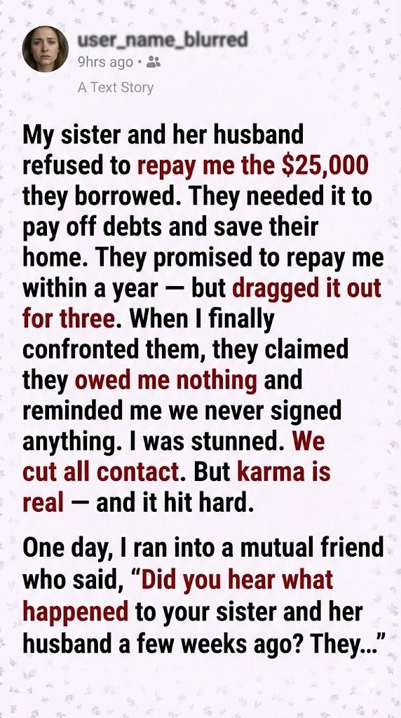 The first six months passed quietly. I didn’t bring it up. I didn’t want to be the kind of person who lords money over people, especially not over my sister. I told myself they’d reach out when they were ready.