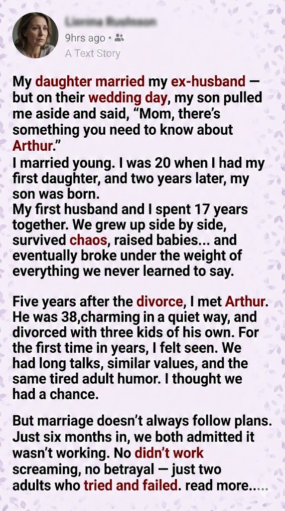 Then one day, two years later, my daughter Rowan sat me down. At 24, she was ambitious and headstrong. “Mom, I’m in love,” she said. Then she said his name: “It’s Arthur.” My throat tightened. “My Arthur?” She nodded. “He reached out. He always understood me.” Then came the ultimatum: “You either accept this, or I cut you out of my life.”