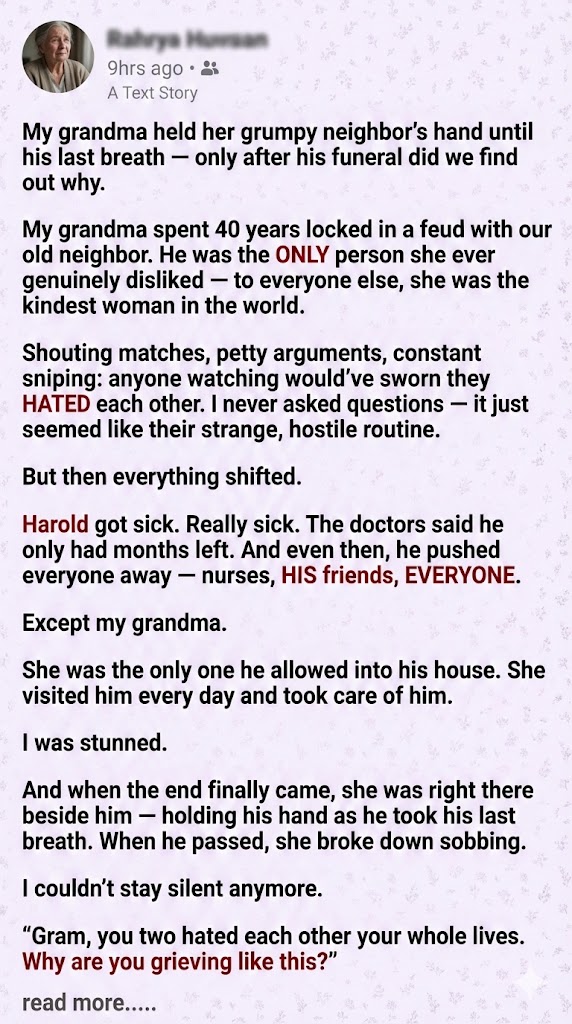 My Grandma Held Her Grumpy Neighbor’s Hand Until His Last Breath – Only After His Funeral Did We Find Out Why