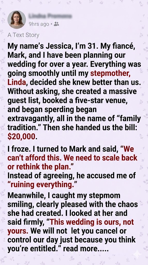 My name is Jessica, and I am 31. My fiancé, Mark, and I had been planning our wedding day for over a year. Everything was going smoothly until my stepmother, Linda, suddenly decided she knew better than us and took control.