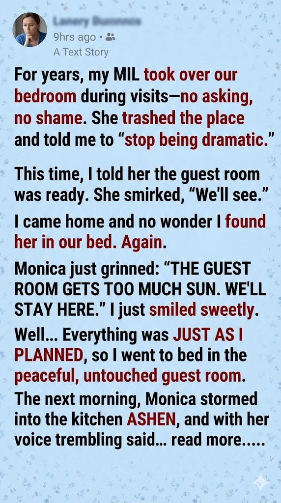Linda arrived with three suitcases, houseplants, and zero respect for boundaries. She unpacked, filled my kitchen with organic teas she never drank, and made passive-aggressive comments about “young people relying on microwaves.”