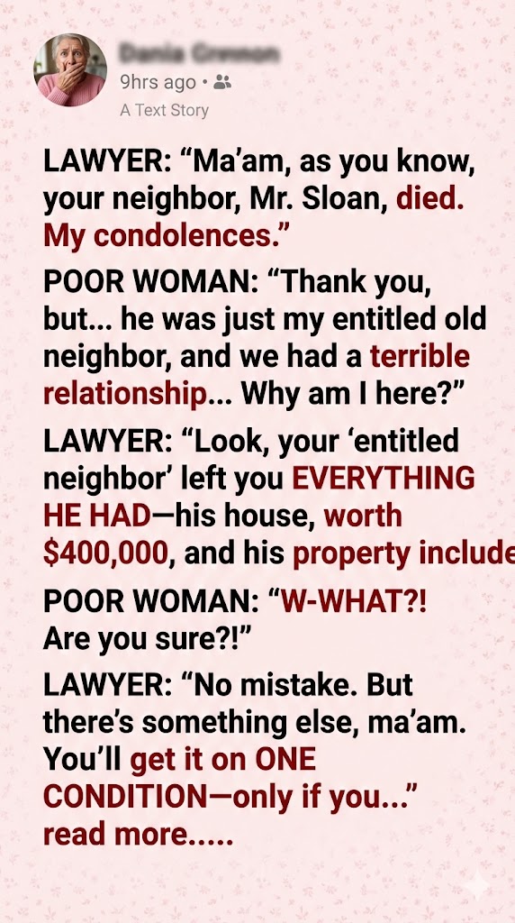 “Linda, you inherit Mr. Sloan’s house. The entire property.”
