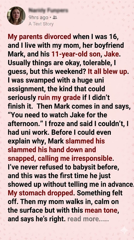 I desperately wanted to explain that I had real, adult responsibilities of my own, but his anger was too loud. Jake looked worried, and my mom’s calm judgment made me feel like I was wrong no matter what I said.