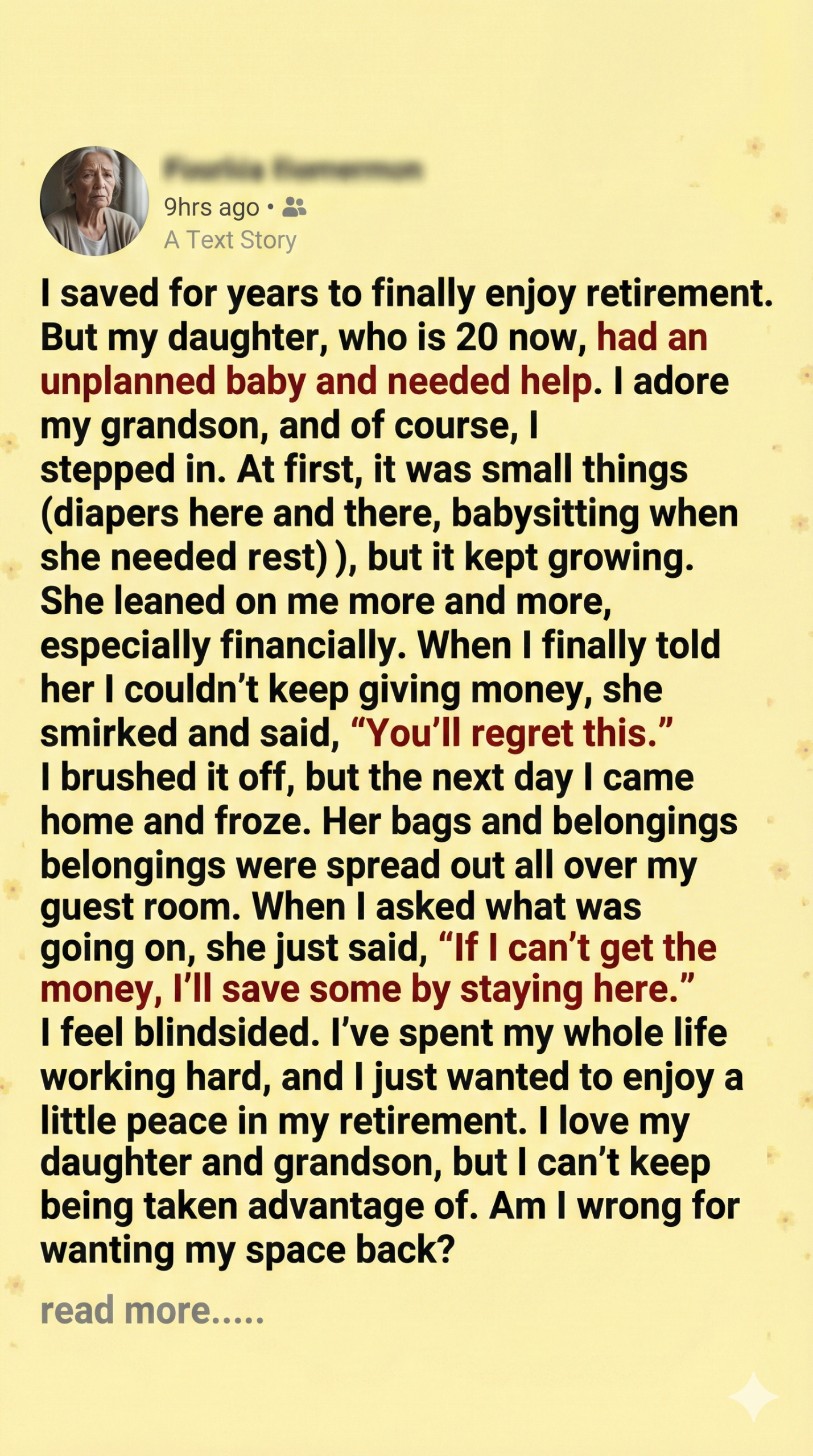 I was weeks away from retiring when my daughter, Emily, dropped the news—she was pregnant, unplanned, and overwhelmed. She asked if I’d postpone retirement to help raise the baby. I love her, but I’d spent decades working, saving, dreaming of freedom. I gently said no. She cried, accused me of being selfish. But I knew if I gave up my retirement now, I might never get it back. I offered support—money, babysitting, advice—but I wouldn’t sacrifice the life I’d earned. It was the hardest decision I’ve ever made. And the most necessary.