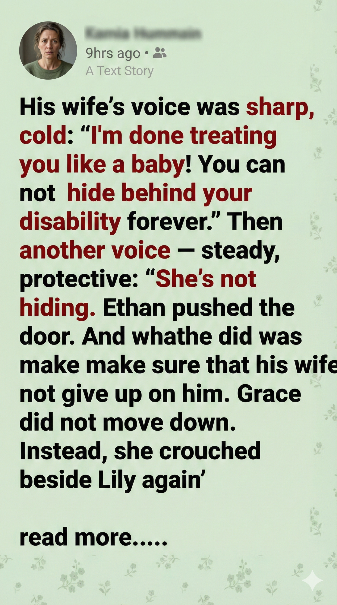“You were just bullying her,” Ethan said, his voice low but thundering in the small room. He walked past his wife, placing himself between her and Grace. “You were kicking someone who is already fighting a war you know nothing about.”