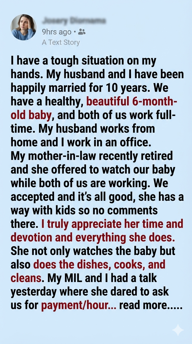 I don’t even know what to say, I’m angry and this situation has started to affect my marriage. My husband believes that she has the right to get paid because if she didn’t care for our kid, we’d still be obligated to hire a complete stranger and we’d probably end up paying even more.