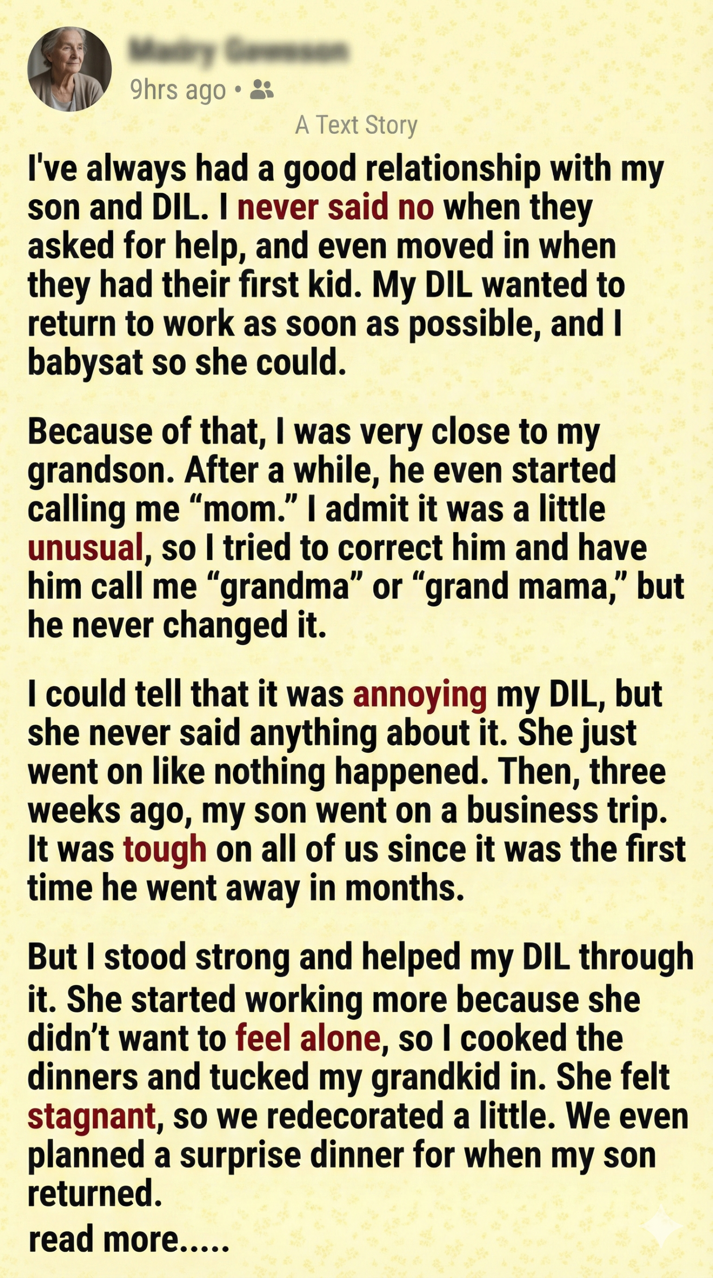 Then, slowly, she began to pull away. It started with missed calls, then canceled visits. My son said she needed space, but I saw the truth: I was being erased. She made new friends, found new routines, and suddenly I was “too involved.” The woman I’d nurtured now saw me as a threat. I was stunned, heartbroken, and utterly confused.