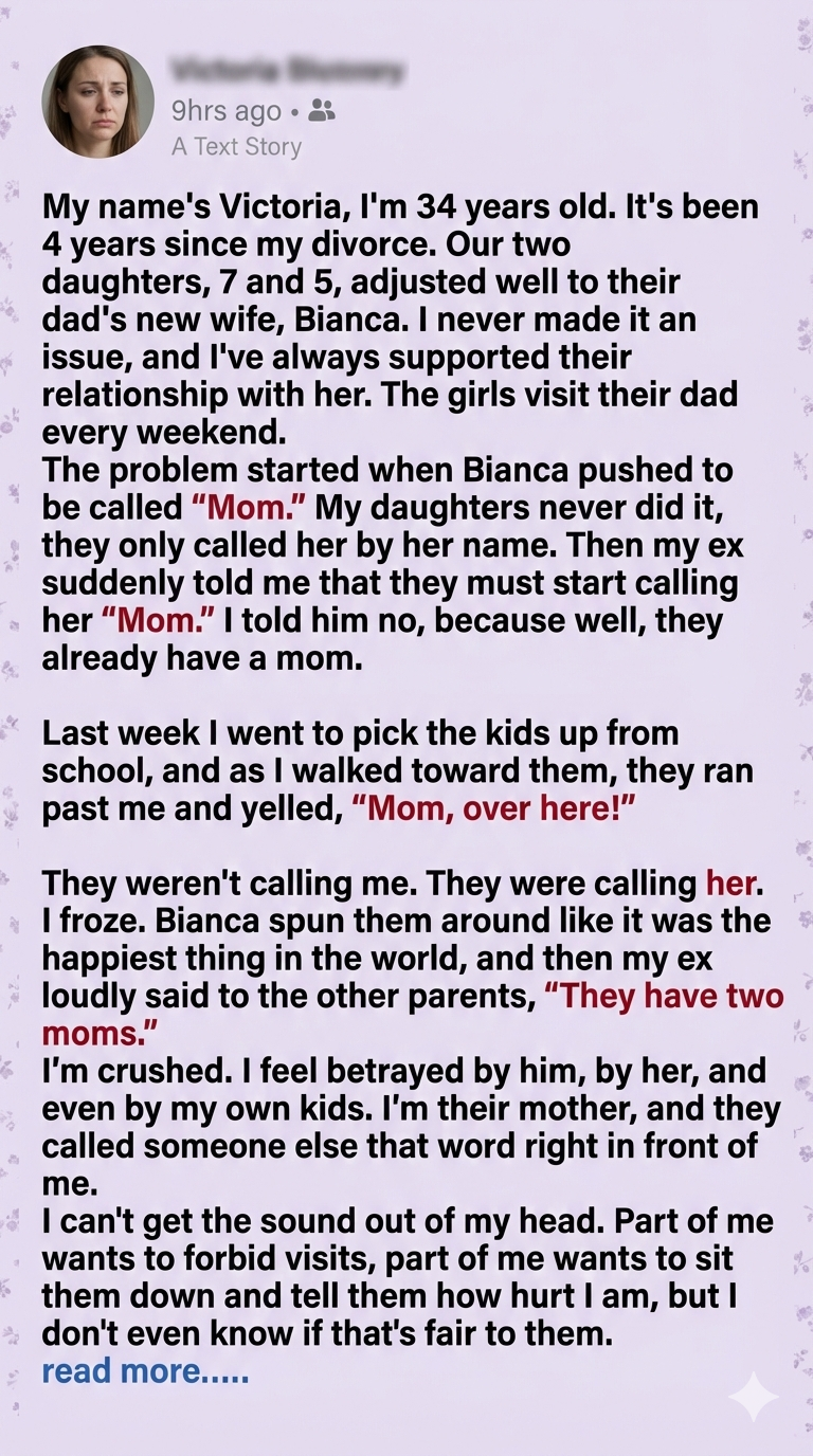We divorced three years ago, and co-parenting hasn’t been easy. I’ve always tried to be respectful, even when emotions ran high. His new wife entered the picture a year ago, and while I welcomed her presence, I never imagined he’d try to rewrite the family dynamic. It wasn’t about jealousy—it was about boundaries. My kids already have a mom. They don’t need to be pressured into redefining that just to make someone else feel included.