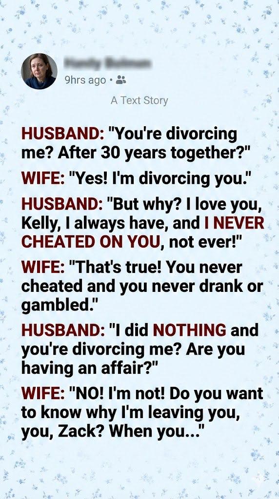 WIFE: “…When you decided that just ‘not being a bad guy’ was the same thing as being a good husband. You think you did nothing wrong? That’s exactly it, Zack. You did nothing. You watched me raise our children alone while you sat on the couch. You watched me grieve my mother alone because you ‘didn’t know what to say.’ You watched me plan every holiday, pay every bill, and carry the emotional weight of this entire family for three decades. You didn’t cheat on me with another woman; you cheated me out of a partner. You let me be lonely in the same room as you for thirty years because you thought that as long as you didn’t hit me or drink, you were winning. I’m not leaving you for someone else. I’m leaving you so I can finally stop waiting for you to show up.”