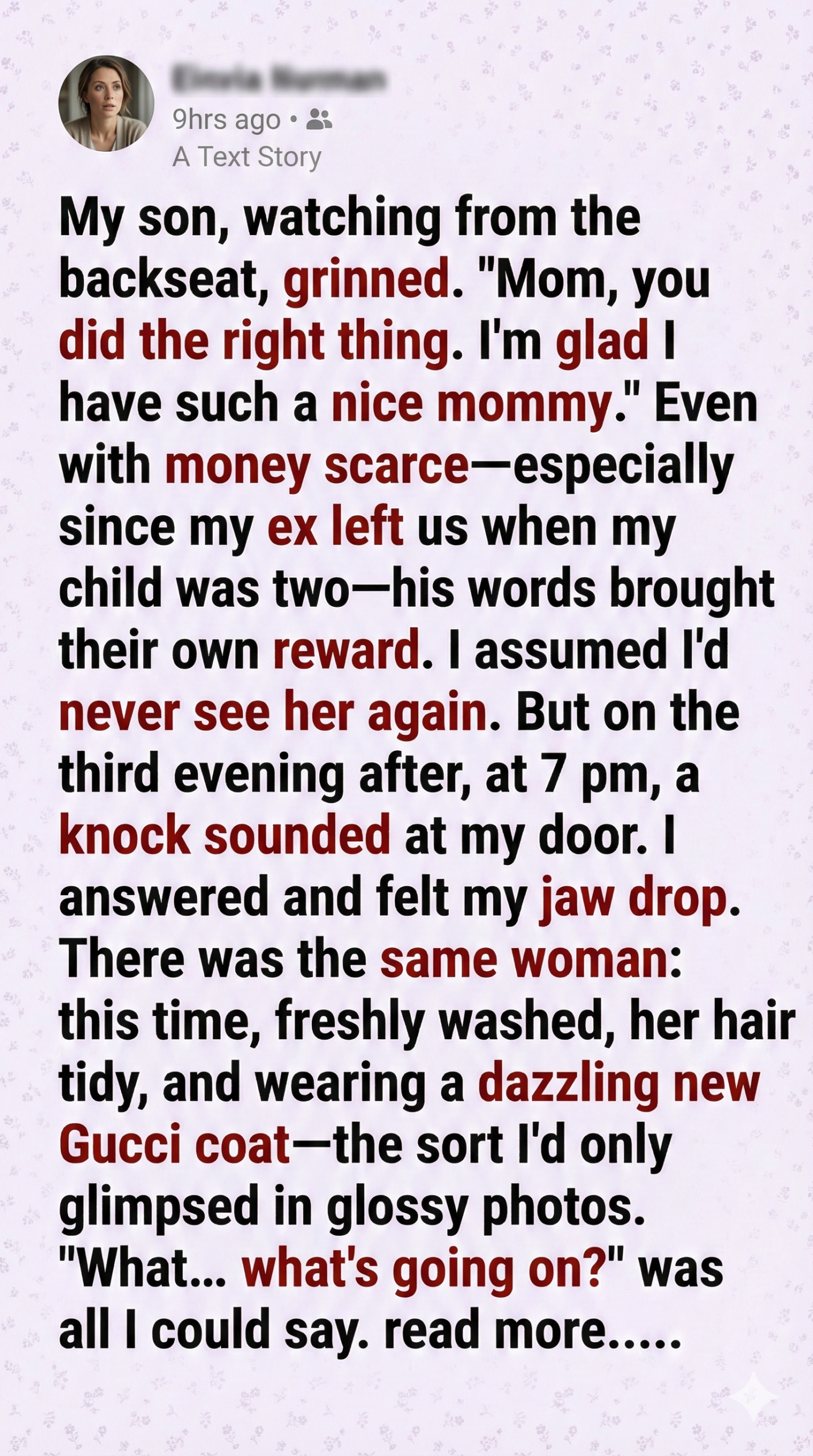 This experience taught me that kindness isn’t just a virtue—it’s a force. Even when you’re struggling, even when every penny matters, there’s always room to help someone else. You never know what’s waiting on the other side of a simple “yes.” Eliza and Albert reminded me that love, loyalty, and grace still exist in this world. And sometimes, they knock on your door dressed in Gucci.