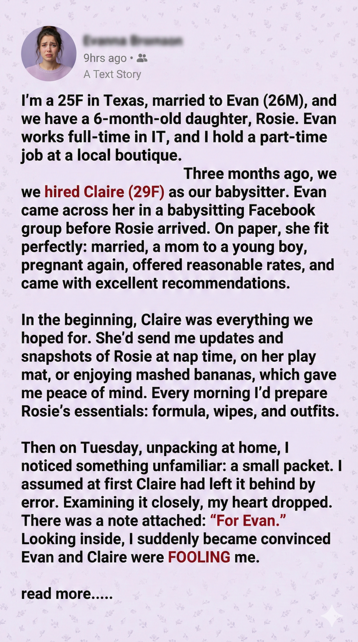 I’m Amelia, 25, and I thought I had the perfect life—my husband Evan, our baby Rosie, and a sweet babysitter named Claire. She was warm, reliable, and pregnant with her second child. I trusted her completely. But one evening, I found a gift tucked in Rosie’s diaper bag—a heart-shaped keychain engraved “Best Dad Ever,” addressed to Evan. My stomach dropped. Why would Claire give my husband such a personal gift? I confronted her, and she brushed it off as appreciation. But something in her tone felt off—too familiar, too intimate.