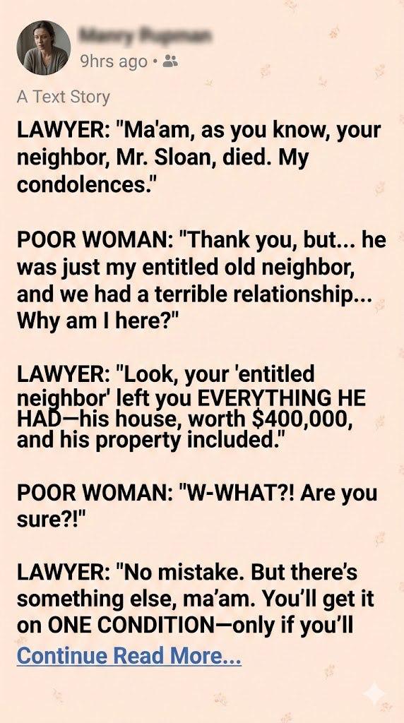 LAWYER: “He couldn’t save her, ma’am. So he spent the last ten years trying to save you. The condition wasn’t about the house. He just wanted to make sure you were safe under a roof for one more year.”