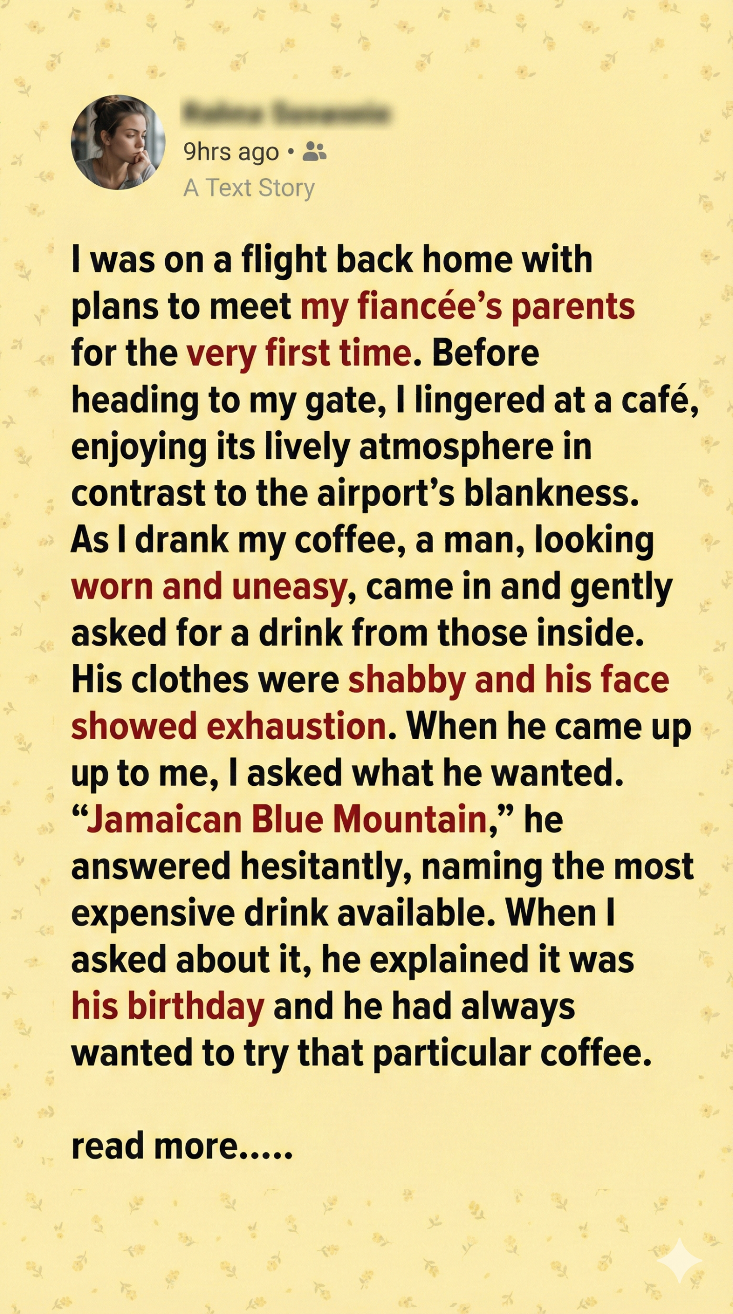 We talked the entire flight. Ray shared stories of his past, his fall from stability, and his slow climb back. He said the coffee wasn’t just a drink—it was dignity. “You saw me,” he said, “when most people look away.” I felt humbled. I hadn’t done anything extraordinary, but to him, it had meant everything. He told me he was flying to speak at a conference about homelessness and resilience. I realized then that small gestures can ripple far beyond what we imagine.