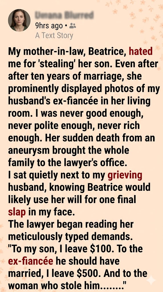 I stood up, thanking the lawyer, and walked out of the office. For the first time since the day I said “I do,” the heavy, suffocating weight of Beatrice’s judgment was gone. In its place was something entirely new, and terrifyingly liberating: absolute control.