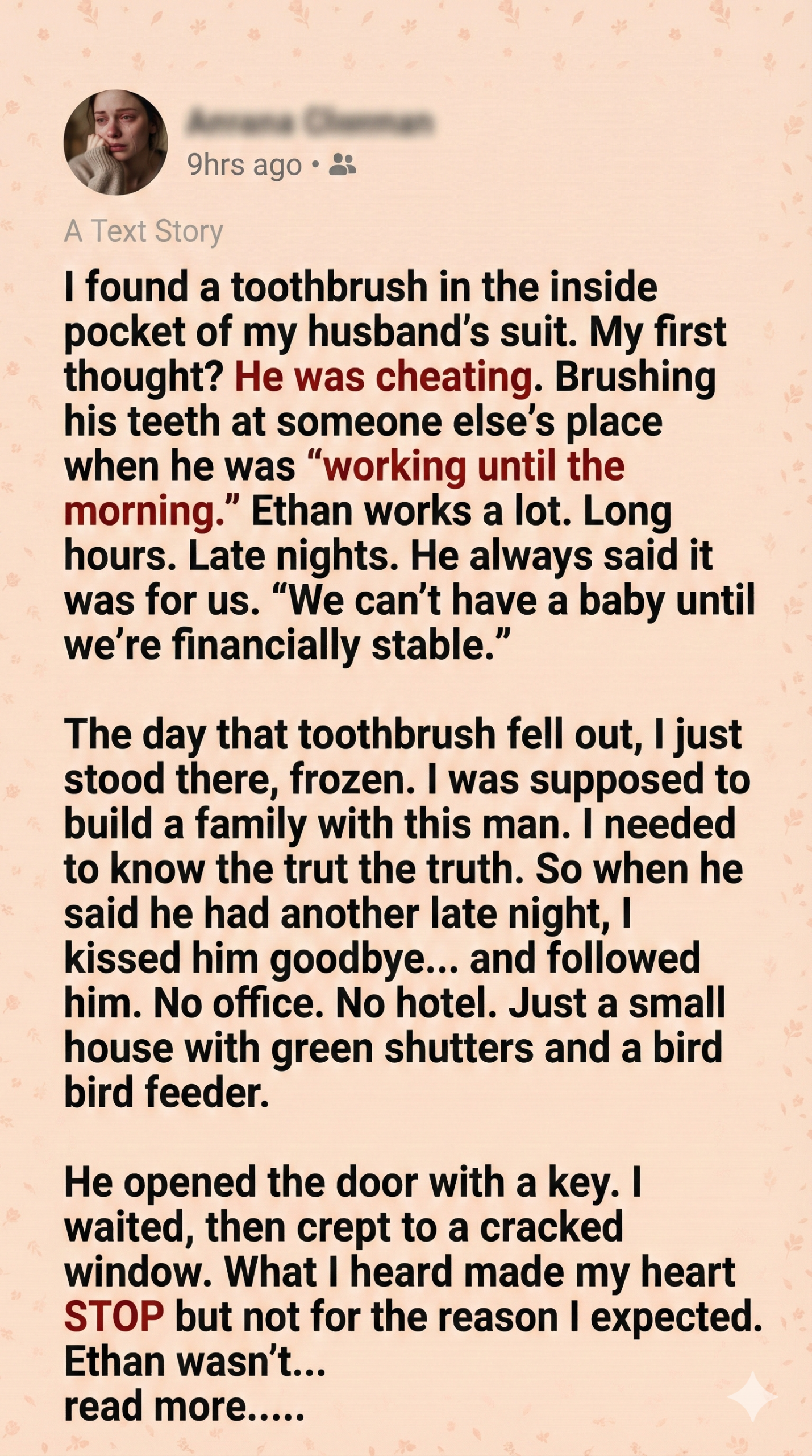 That night, when Ethan said he had another late shift, I kissed him goodbye… and followed him.