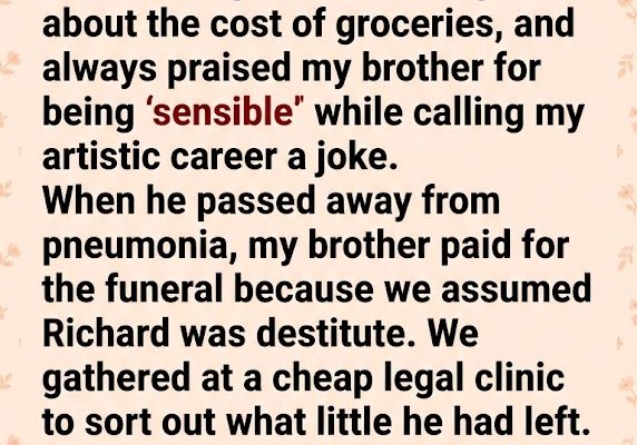 I stayed seated for a moment longer, clutching the envelope to my chest. Uncle Richard had lived his entire life in disguise, hiding his genius behind a scowl and a worn-out cardigan. He had left David exactly what David valued—the exact change. But to me, he had left the world.