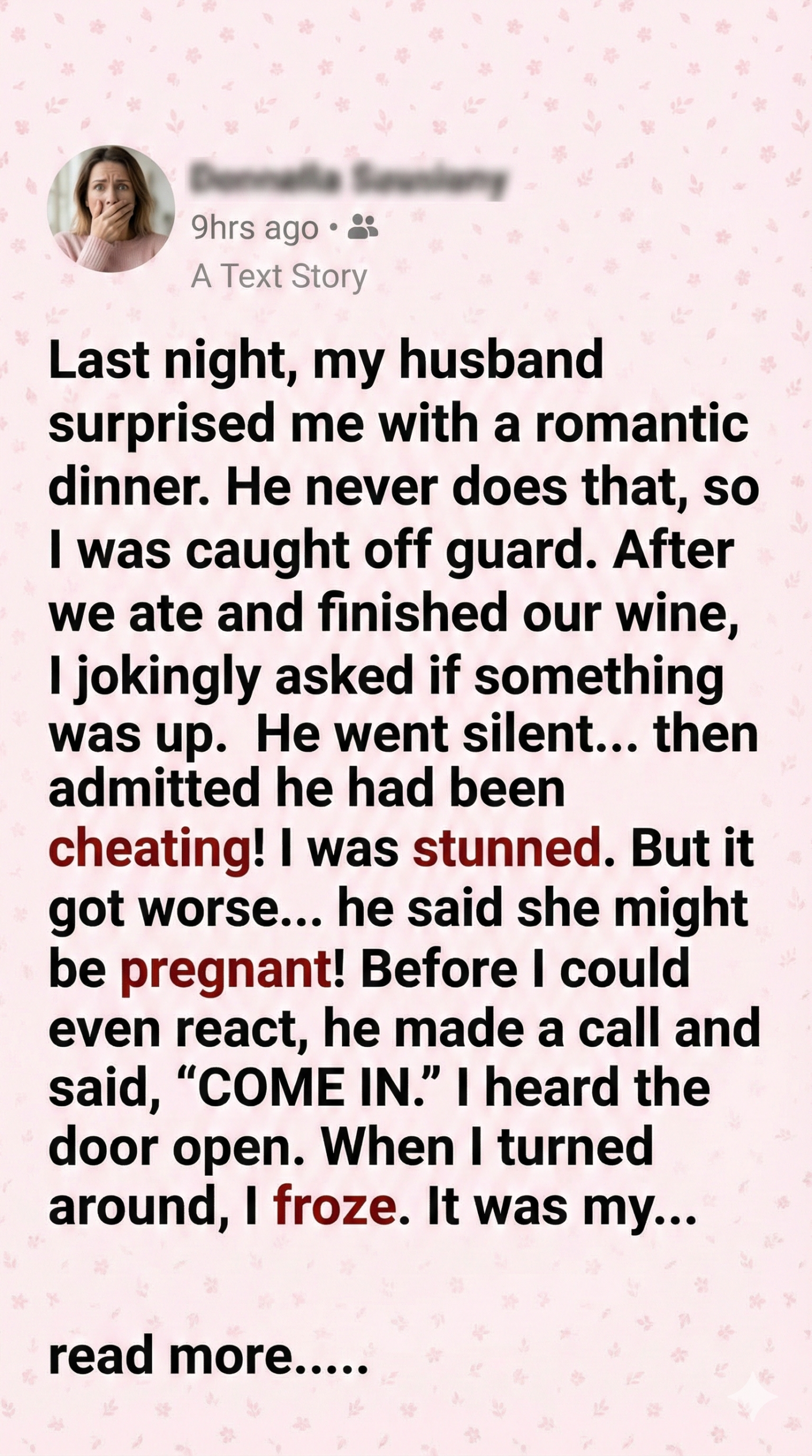 Lena thought her husband’s surprise dinner was a gesture of love. Candles, wine, soft music—it felt like a dream. But the dream shattered when she found a hidden phone buzzing with messages from another woman. The dinner wasn’t romance—it was distraction. Lena didn’t confront him immediately. Instead, she played along, gathering evidence, preparing her exit. When she finally revealed the truth, she did it with grace and power, leaving him stunned. Her heartbreak became her liberation.