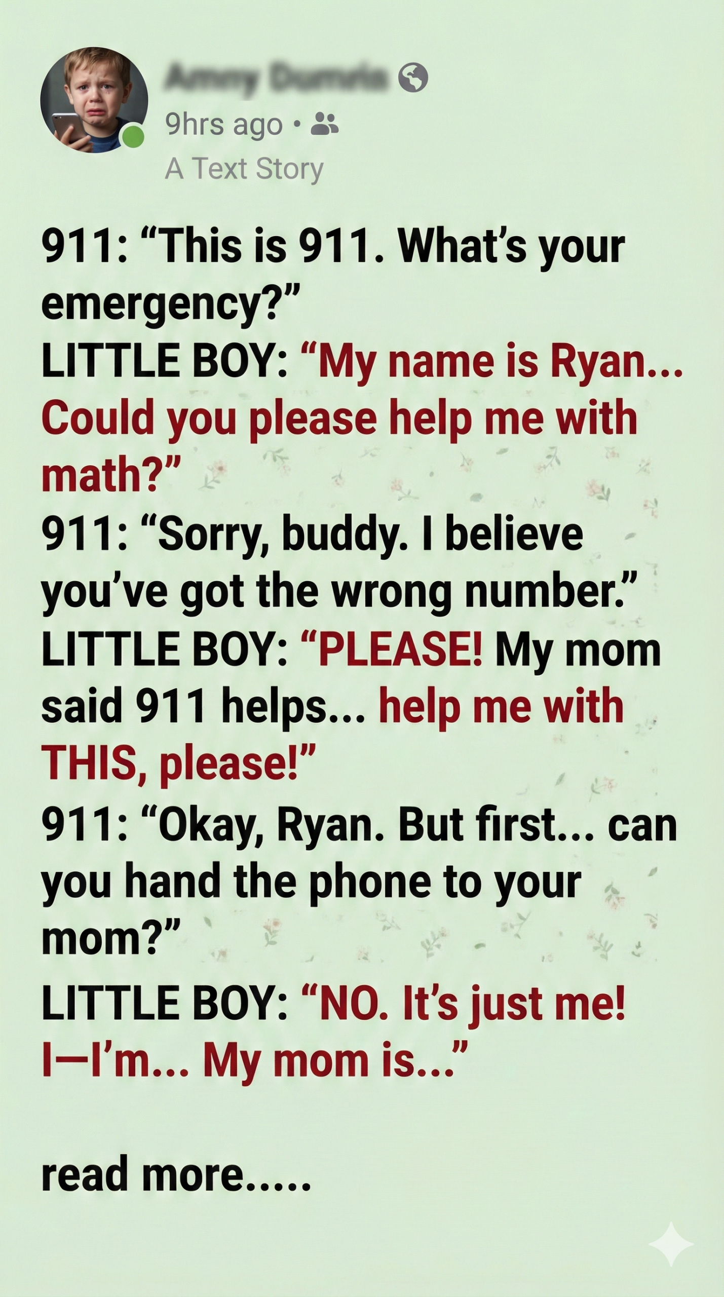 But Ryan insisted that he only needed help to solve his math problems. “Please! My mom said 911 helps… help me with this, please!” he cried.