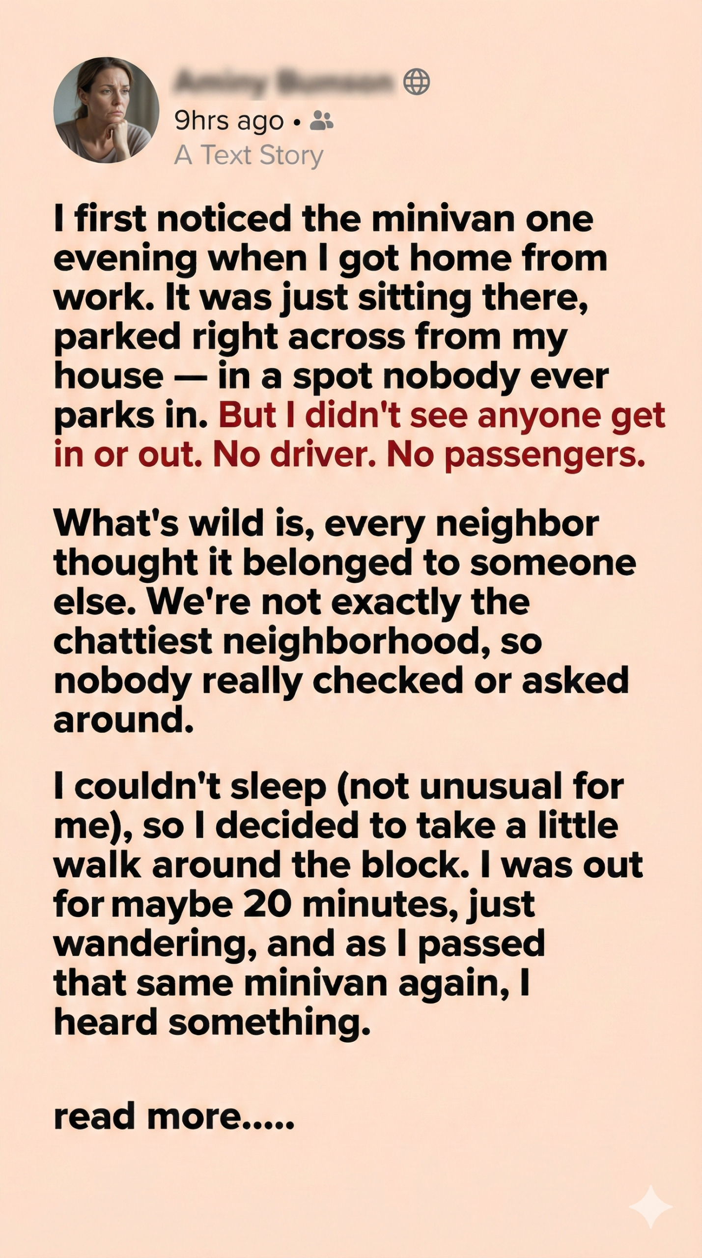 For weeks, a faded red van sat silently across from Catherine’s house in Willow Brook. As a single mother of twin teenage daughters, she was used to ignoring the oddities of suburban life. But this van was different—unmoving, tinted, and eerily quiet. It became a fixture in her daily routine, a shadow she couldn’t shake.