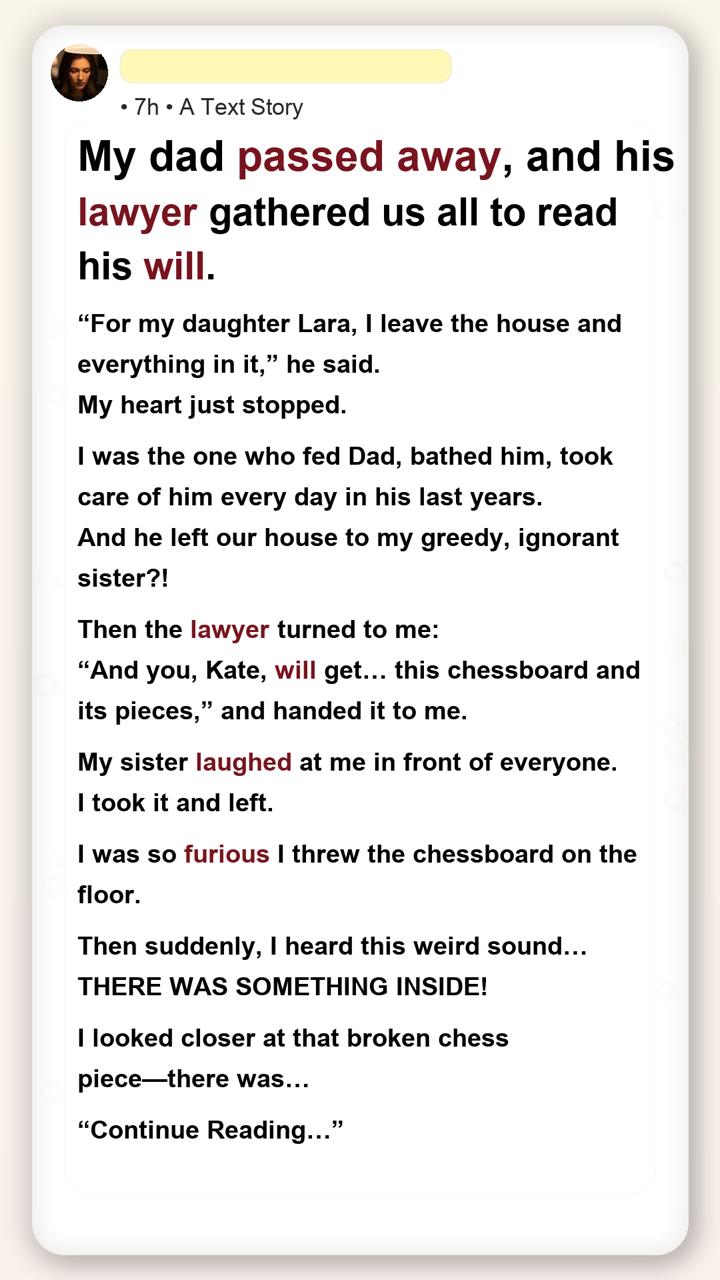 “Kate, if you’re reading this, you’re playing the right move. I couldn’t let Lara know. The house is mortgaged beyond repair. Everything in it is debt. I gave it to her because she only wanted what looked valuable. You wanted me. The key is to the safety deposit box. Everything I saved is yours. Thank you for loving me, not my things. — Dad.”