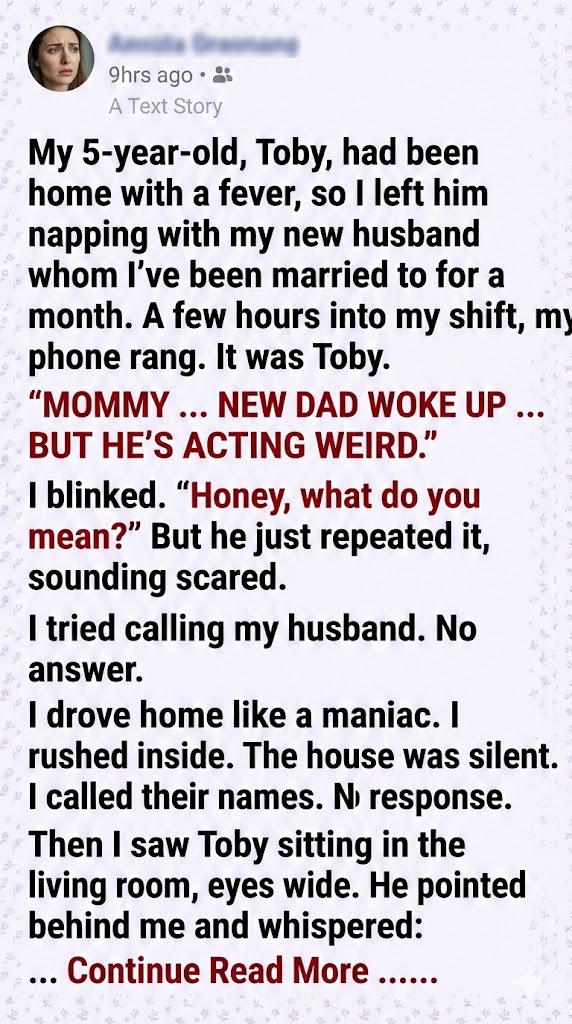 I didn’t think. I grabbed the heavy lamp from the side table, hurled it at the thing, and scooped Toby up in my arms. I smashed through the patio door and didn’t stop running until I reached the neighbor’s house. We never went back. I don’t know what I married a month ago, but I know the real David never came home from urgent care, and the thing in our house is still waiting for us to return.