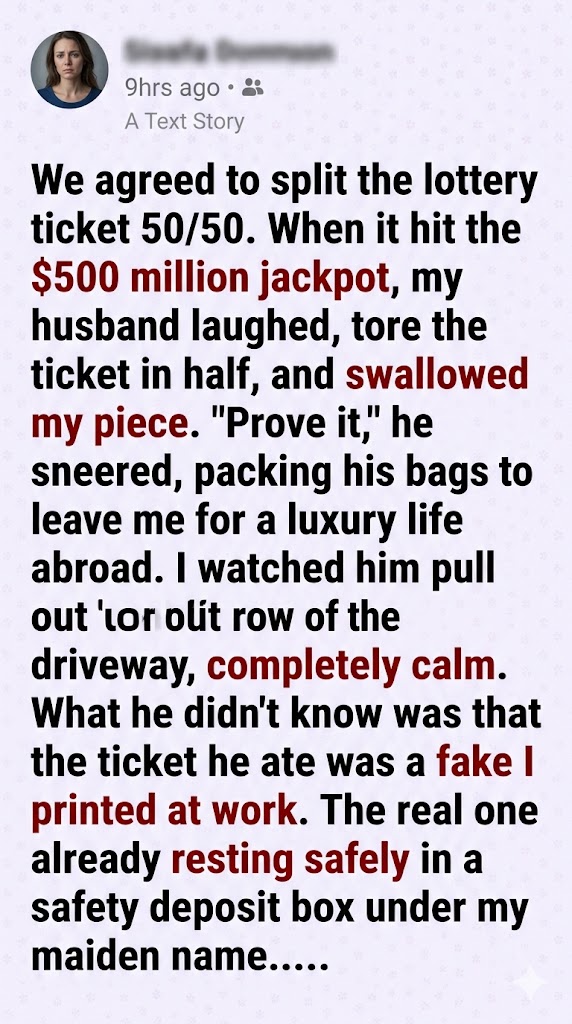 I slipped the real ticket into a safety deposit box rented under my maiden name, went home, and waited for him to check the numbers himself.