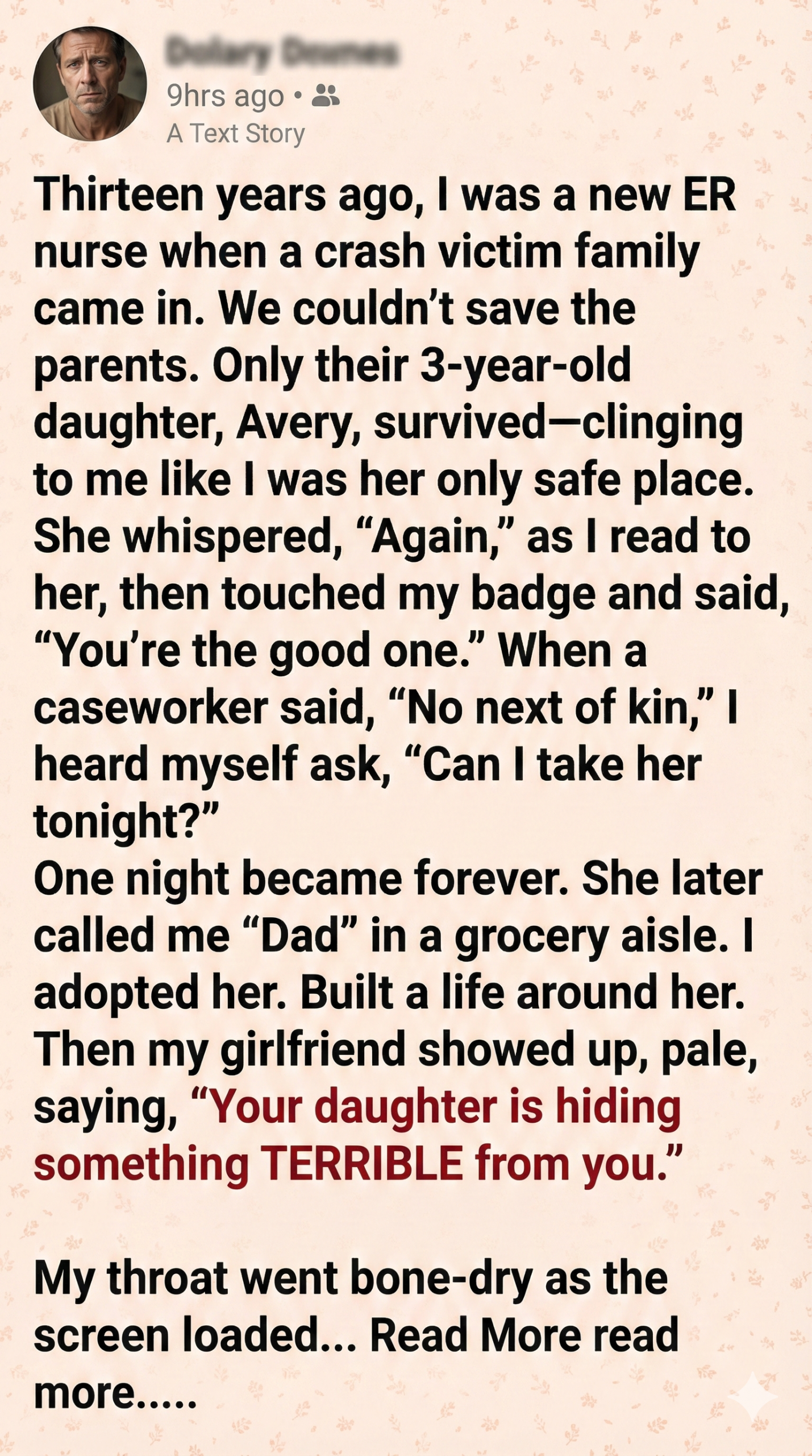 Thirteen years ago, I became a father to a little girl who lost everything in one terrible night. I built my life around her and loved her like my own blood. Then my girlfriend showed me something that shook me, and I had to choose between the woman I planned to marry and the daughter I’d raised.