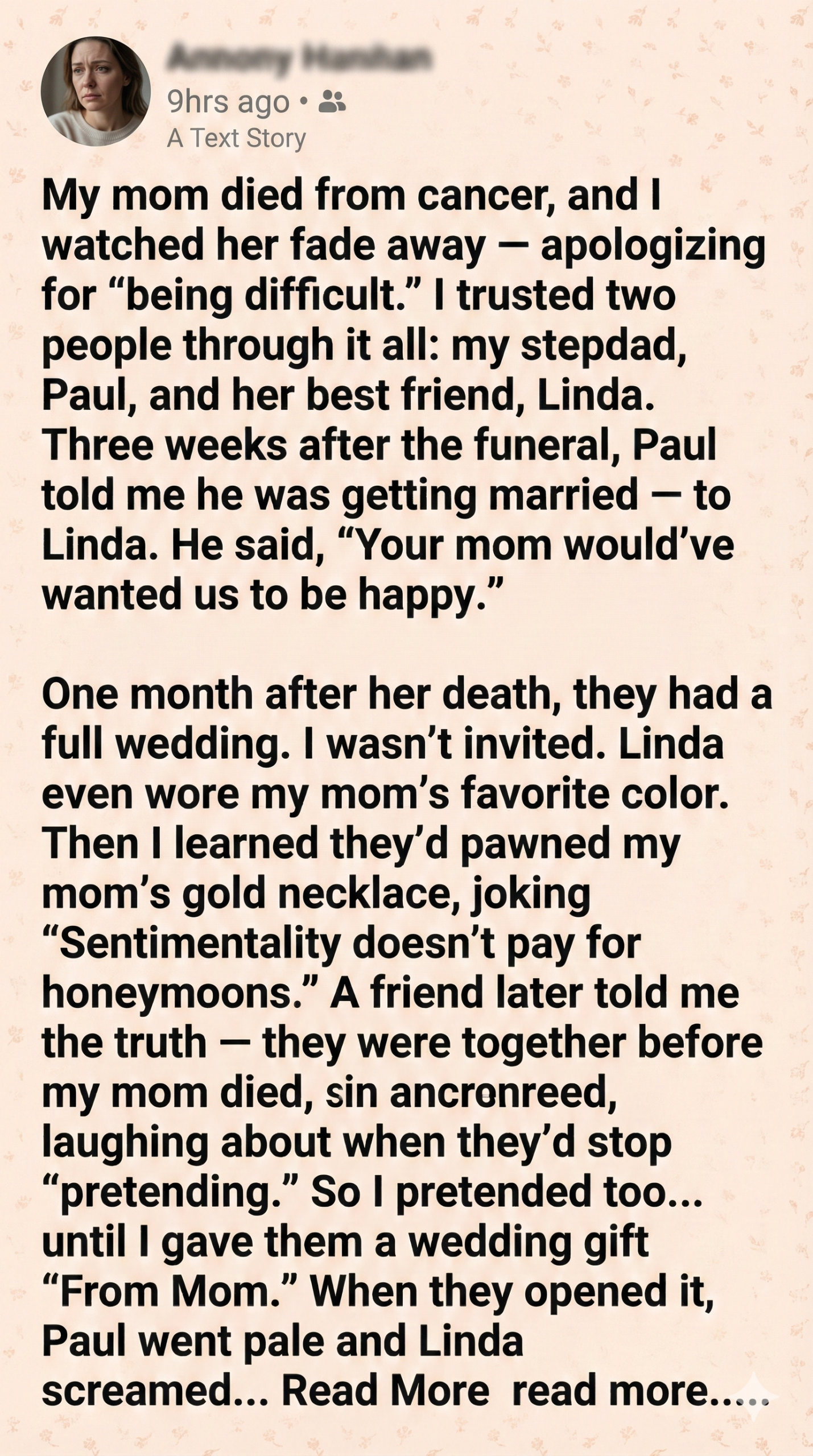 My mom had barely been gone a month when my stepdad told me he was getting married to Mom’s best friend. That alone should’ve broken me. But what shattered me came later when I discovered what they were hiding all along. What I did next, they never saw coming.