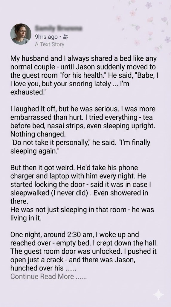 My blood ran cold. The tea, the nasal strips, the sleeping upright, the humiliation—I had tortured myself for weeks over a medical problem that didn’t even exist. There was no snoring. There was just him, gaslighting me so he could carry on an affair in the next room without me bothering him.