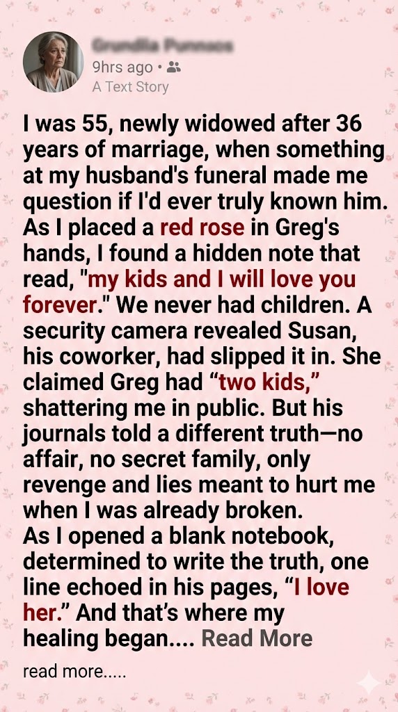 So I started. About Greg. About the rose. About the note. About the cameras. About Luis, Peter, and Ben. About a woman who walked into a funeral and tried to bury a good man twice. I don’t know what I’ll do with it yet.